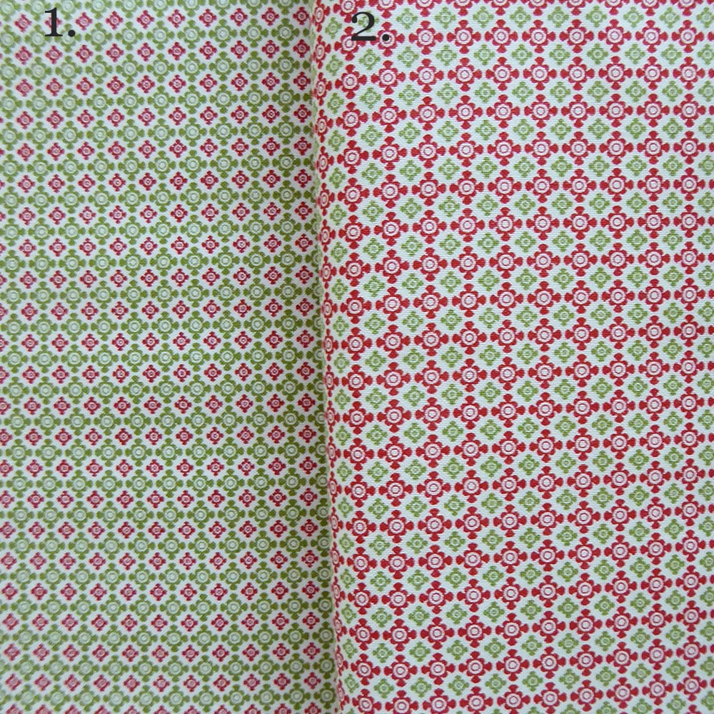 The tiny white clam shell on red print is the perfect medium for the next red and white project.