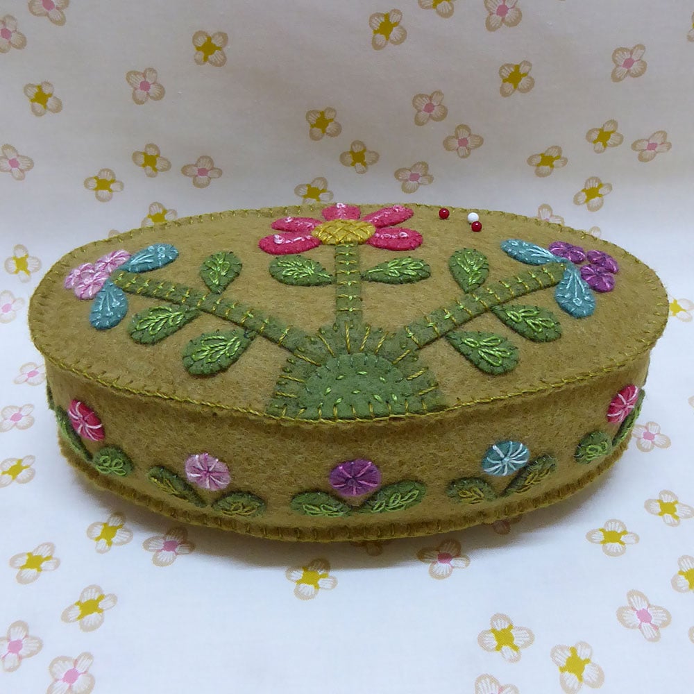 A lovely felt pincushion to use or add to a collection. Entirely hand sewn. The felt pieces are whip stitched, see my tutorial on YouTube - Marg Low Designs and embellished with simple stitches.